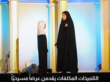 التلميذات يقدمن عرضًا مسرحيًّا بعنوان (من الخيام إلى الفتوى) ضمن فعاليات اليوم الثاني من حفل التكليف المركزي الثامن