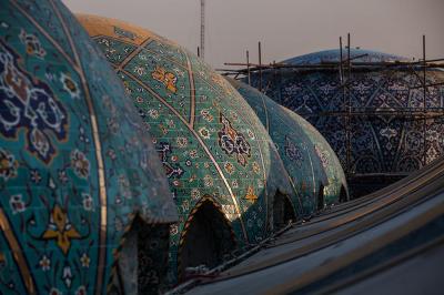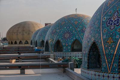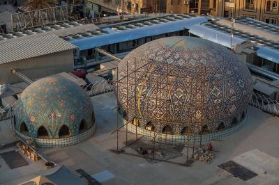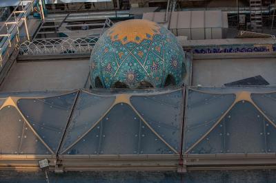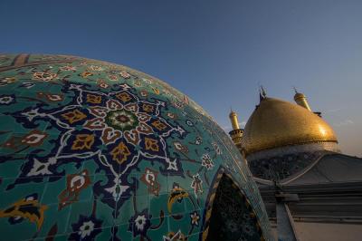 وأضاف: "غلّفت هذه القباب بالكاشي الكربلائيّ الذي تمّ اختيار نوعيته وفقاً لمعطياتٍ ذات معايير هندسية وفنية خاصة، وذلك بعد إجراء عددٍ من الفحوصات المختبرية والموقعية، فتمّ اختيار نوعٍ وحجمٍ يمتاز بخفّة الوزن وبسُمْك (1سم) وبنقوش ورسومٍ متناغمة مع ما موجود في أروقة العتبة المقدّسة لخلق حالةٍ من التناظر، فضلاً عن امتيازه بثباتية اللون ومقاومته العالية للظروف الجوّية ودرجات الحرارة العالية التي تصل الى أكثر من (60) درجة مئوية، وبقياساتٍ مختلفة تبعاً لقياسات كلّ قبة".