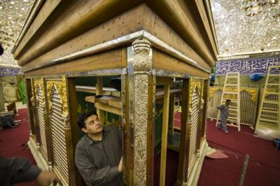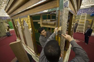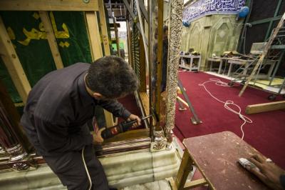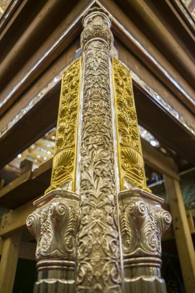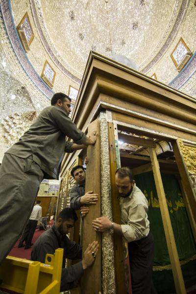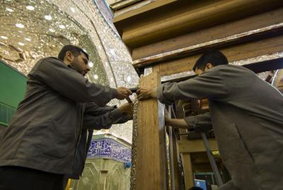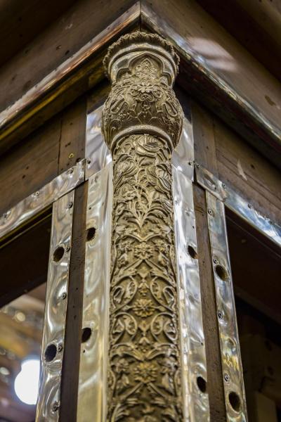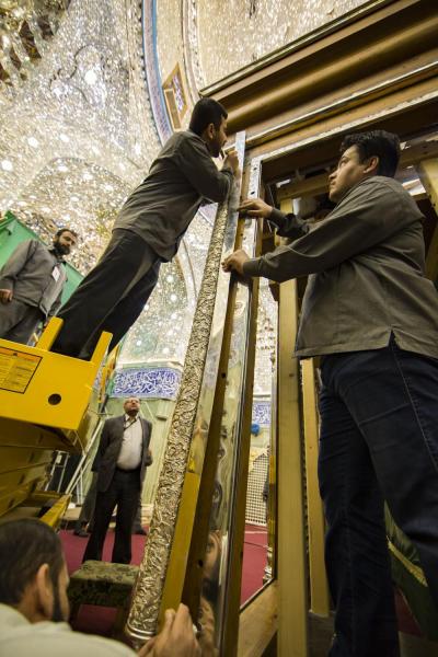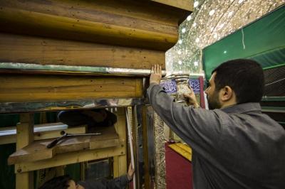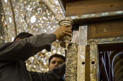 أكتمل عقد الأعمدة الركنية للشباك الجديد لضريح ابي الفضل العباس عليه السلام والذي صنع وركب بأنامل خدمته بتركيب التيجان العلوية التي تعتلي هذه الأعمدة الأربعه التي تركن الشباك من جهاته الأربع .