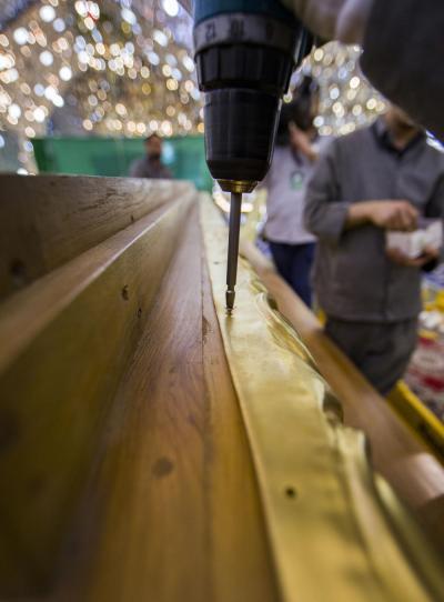 تشهد أعمال تثبيت وتركيب قطع الشبّاك الجديد لأبي الفضل العباس(عليه السلام) تقدّماً واضحاً وملموساً سواءً الأجزاء المعدنيّة أو الخشبيّة منه، وذلك وفقاً لخطّة عملٍ وضعتها الجهة المشرفةُ عليه والتي تنفّذها نفس الملاكات التي تشرّفت بتصنيعها من العاملين في مصنع شبابيك الأضرحة المقدّسة والمزارات الشريفة التابع للعتبة العباسيّة المقدّسة وحسب جدولٍ زمنيّ ومكانيّ لكلّ قطعةٍ أو جزء.