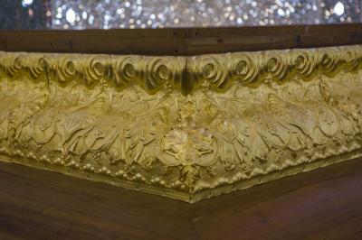يبلغ عددُ الأجزاء في هذا المقطع (16) جزءً وتأخذ شكل الرقم (4)، ويبلغ ارتفاع هذا المقطع (55سم) وعرض كلّ قطعة (128سم) وبوزنٍ يُقدّر بـ(4كغم)، وقد صُنِعَت من النحاس وتمّ طلاؤها بالذهب تبعاً لنسبٍ وقياسات خاصّة روعي فيها السُمْك وطول كلّ قطعة والنقوش، وبحسب المخطّطات المرسومة التي تتناغم مع باقي ألوان وقطع الشبّاك الأخرى، ورُكّب أيضاً بطريقة فنّية وحرفيّة على الهيكل الخشبيّ حاله حال بقيّة الأجزاء والقطع ممّا جعل من جميع مفاصله ملتحمة كأنّها قطعة واحدة مع باقي أجزائها ومع الهيكل الخشبيّ.