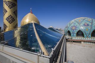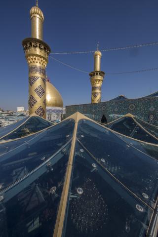 ث. تركيبة الخيم الزّجاجيّة -هيكلاً وزُجاجاً-، وزجاج الشّبابيك للقباب الثابتة، بما يُحقّق خاصّيّة الإضاءة السماويّة الطبيعيّة في النهار (Sky Light) مع خاصيّة كون الخيام متحرّكة آليّاً، وقد استُخدِمَ الزجاجُ الفريد من نوعه، المُضادّ للتهشّم حتى بعد الكسر بسبب احتوائه على حشوةٍ جيلاتينيّة، والمُصنّع خصّيصاً للمشروع وفق مواصفات المهندس المصمّم، وقد مثّل الجزء المتحرّك من المشروع.